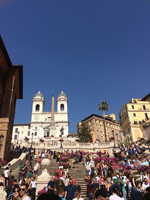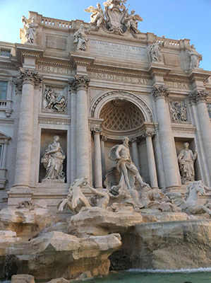 占地六英畝的古羅馬斗獸場(chǎng)又稱(chēng)圓形競(jìng)技場(chǎng),位于古羅馬廣場(chǎng)較低的一頭,像一座由石灰石壘成的頂部凹陷的小山。站在底部,可以感受到深深的壓迫感襲來(lái)!斗獸場(chǎng)的外墻布滿大得令人生畏的拱門(mén);內(nèi)部是裂痕累累的座位席,底部是一個(gè)曾經(jīng)人獸決斗表演的平臺(tái),平臺(tái)下方是關(guān)閉野獸和奴隸的隔間??粗矍暗木跋?,仿佛以前人獸決斗的場(chǎng)面就在眼前,那么深刻,那么逼真。結(jié)束了讓人嘆為觀止的斗獸場(chǎng)游覽,我們的視線來(lái)到了西班牙廣場(chǎng)。這里來(lái)自世界各地的游客手拿Gelato, 他們開(kāi)心的笑著交談著,仿佛要復(fù)刻《羅馬假日》里的經(jīng)典橋段,為落日的余暉增添了一絲光亮。人們圍坐在廣場(chǎng)上的破船噴水池邊,這是由最著名的巴洛克式建筑巨匠貝尼尼所設(shè)計(jì)的。他們談天說(shuō)地,享受初夏的清涼。追隨《羅馬假日》的鏡頭,富士豪經(jīng)銷(xiāo)商代表團(tuán)一行人又來(lái)到了少女噴泉。關(guān)于許愿池還有個(gè)美麗傳說(shuō)——游客只要背對(duì)許愿池,右手拿硬幣越過(guò)左肩拋入池中,便有機(jī)會(huì)再次訪問(wèn)羅馬;而當(dāng)情侶一起向池中投入硬幣,愛(ài)情就會(huì)永恒。大家都被美好的傳說(shuō)所吸引,爭(zhēng)相往許愿池里投硬幣,希望美好的愿望可以實(shí)現(xiàn)。