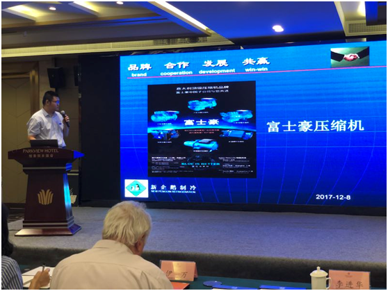 (濟(jì)南新企鵝制冷設(shè)備有限公司銷售總監(jiān)趙震先生向大家介紹富士豪壓縮機(jī)系列產(chǎn)品)