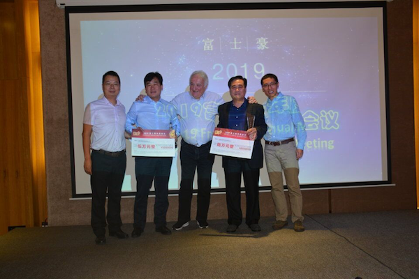 “互利互惠、互利共贏”始終是富士豪的企業(yè)經(jīng)營理念,對于優(yōu)秀的經(jīng)銷商的表彰與鼓勵更是讓他們在獲得財富的同時,以獲得更大的前進動力。本次會議期間,富士豪還針對2018年度做出突出業(yè)績的優(yōu)秀客戶進行了表彰,并頒發(fā)了榮譽獎杯及豐厚的支票作為獎勵,這不僅是對經(jīng)銷商、代理商們的肯定與支持,更是希望彼此能夠加強合作,開創(chuàng)更大的市場。